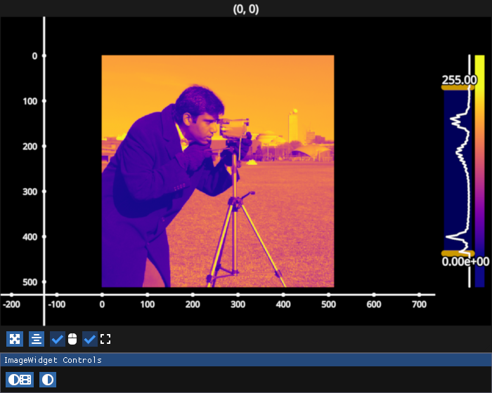We use the ImageWidget here because the histogram LUT tool makes it easy to see the changes in vmin and vmax.